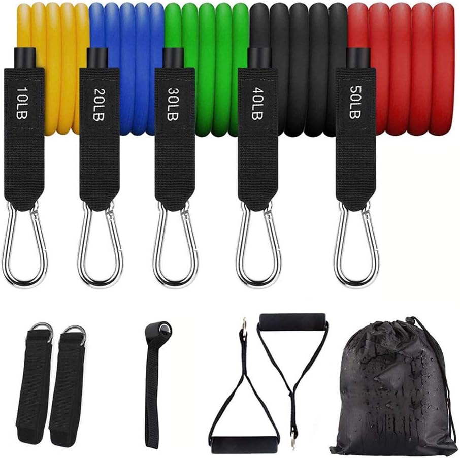 Cada banda está diseñada con diferentes niveles de tensión (de 10 a 50 lb), y puedes combinarlas para alcanzar hasta 150 libras de resistencia. Ideal para ejercitar brazos, piernas, abdomen, espalda, pecho y hombros.