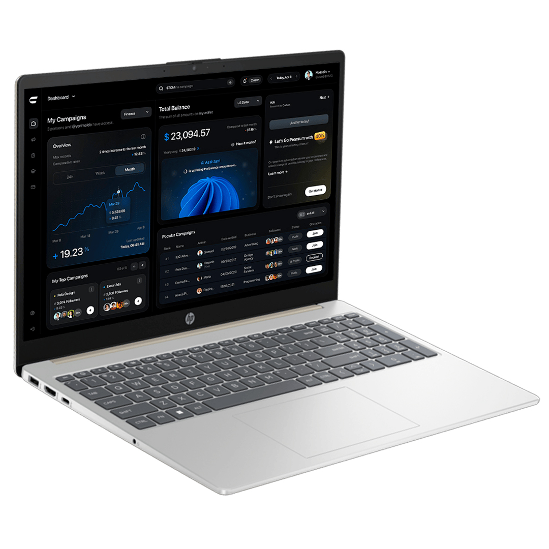 El HP 15-fn0053la es una laptop versátil diseñada para ofrecer un buen equilibrio entre rendimiento, capacidad y uso diario. Gracias a su procesador AMD Ryzen con capacidades de inteligencia artificial y memoria DDR5, permite ejecutar tareas de oficina, estudio y multitarea de manera fluida.