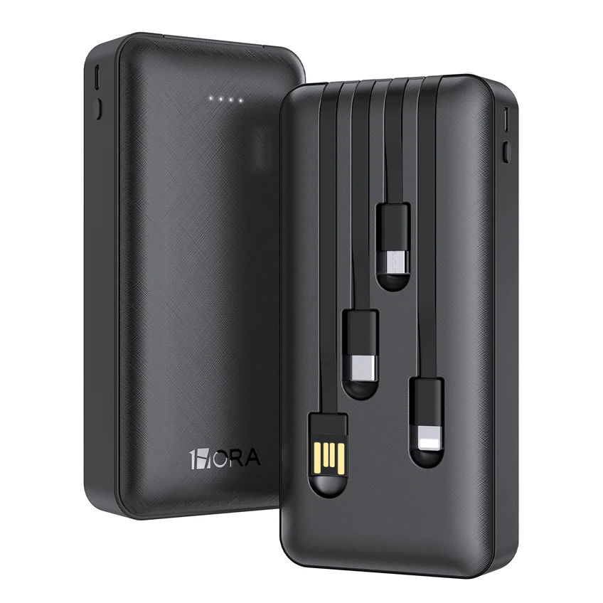 - Contenido: Power Bank portátil de 20000 mah marca 1Hora con cables de carga USB, Micro USB / V8, Tipo C e IP. Un empaque ecológico, tarjeta de garantía, póliza de garantía de 1 año y servicio al cliente las 24 horas.